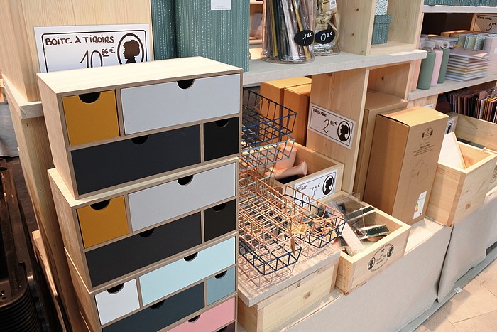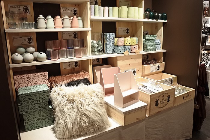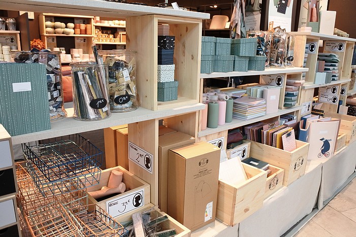 Les produits sont rangés dans des rayons avec des étagères en bois selon des thématiques ou des pièces de vie. A savoir qu’il y a beaucoup beaucoup de choix, on ne sait plus où donner de la tête haha ! Vous trouverez aussi bien des rangements pour la chambre à coucher, que de la décoration ou encore des ustensiles de cuisine. Papeterie, éléments de loisirs créatifs et vaisselle sont aussi au rendez-vous, on retrouve le charme danois et scandinave dans le style de décoration du magasin.